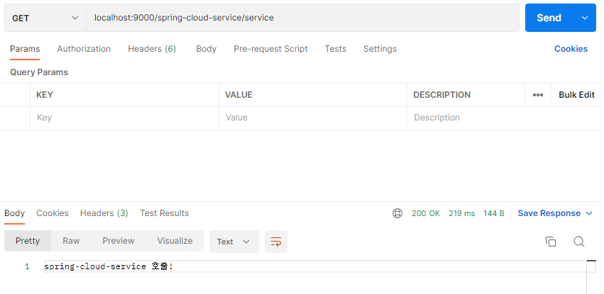 postman을 사용해서 localhost:9000/spring-cloud-service/service 호출하면