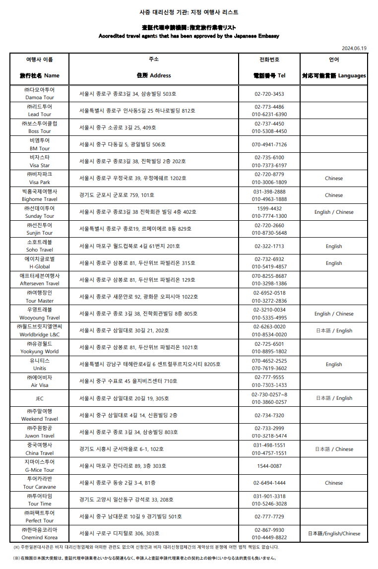 【중요한 안내/Information for Visa Applicants】 개인에 의한 사증(비자) 신청은 대사관 지정의 대리 신청기관(별지 일람표 참조)을 통한 신청 접수 및 수령으로 한정합니다. Applicants are requested to apply