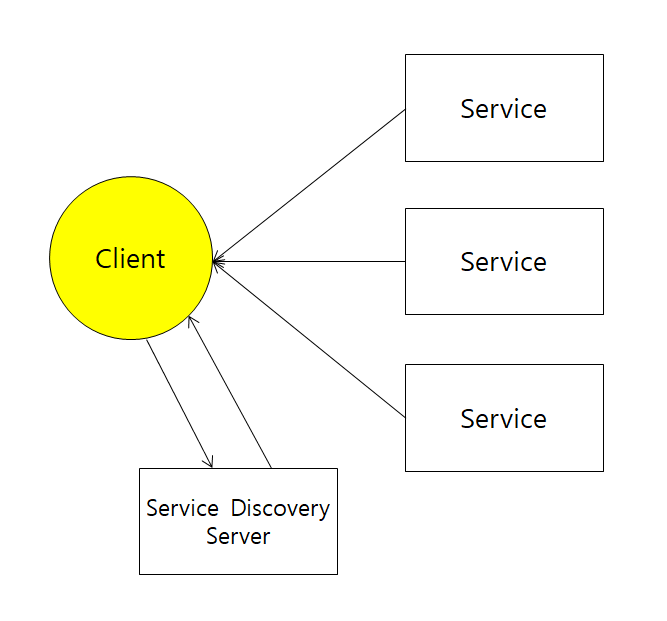 Client Side Discovery는 클라이언트가 서비스를 호출할 때 디스커버리 서버에 서비스의 위치를 확인하여 해당 서비스를 호출하는 방식이다.